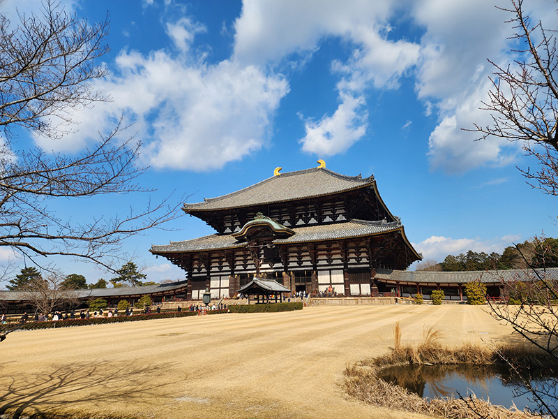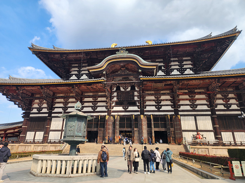 동대사는 일본 나라에 위치한 유네스코 세계문화유산으로, 세계 최대 규모의 목조 건축물인 대불전에 높이 15m의 거대한 청동 대불이 봉안되어 있다. 사찰 앞 나라 공원에서는 사슴과 교감할 수 있어 가족 관광객에게도 인기 있는 명소다.