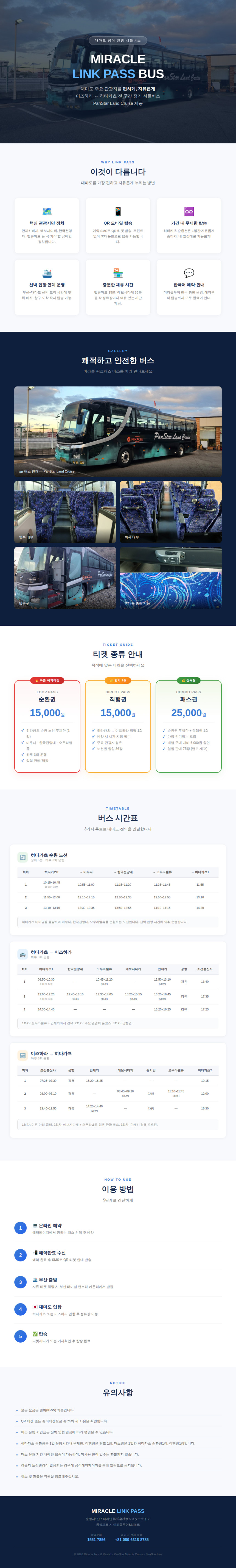포함된 직행버스용 버스패스는 출발은 선박을 이용하실 수 있는 최적의 노선을 이용하시게 되며, 대마도에서 출국하시는 날 이용하실 수 있게