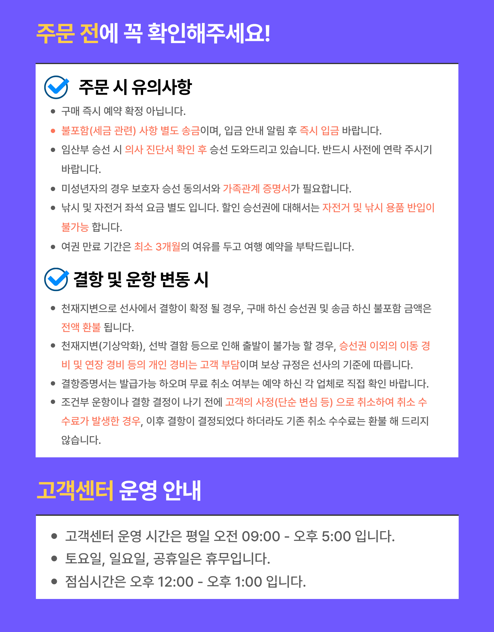 ※ 여행사에서 판매한 할인 왕복승선권은 일정 변경 불가 조건입니다.