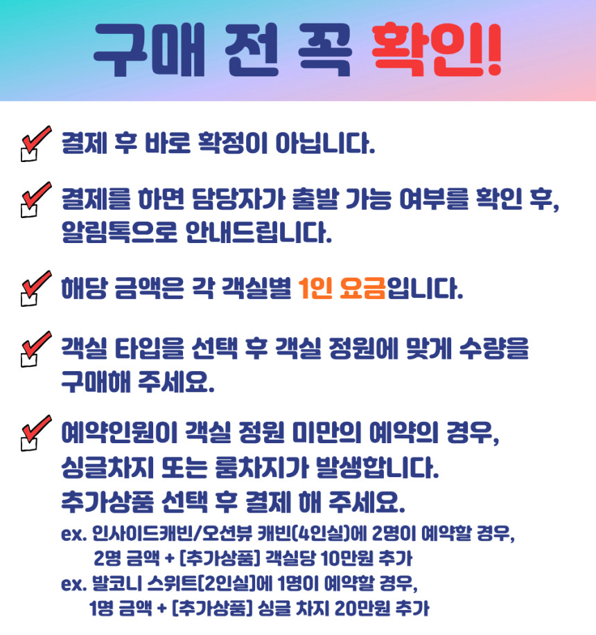 - 예약 확정 후 여행출발일 1일 전~당일 취소 : 전액 환불 불가