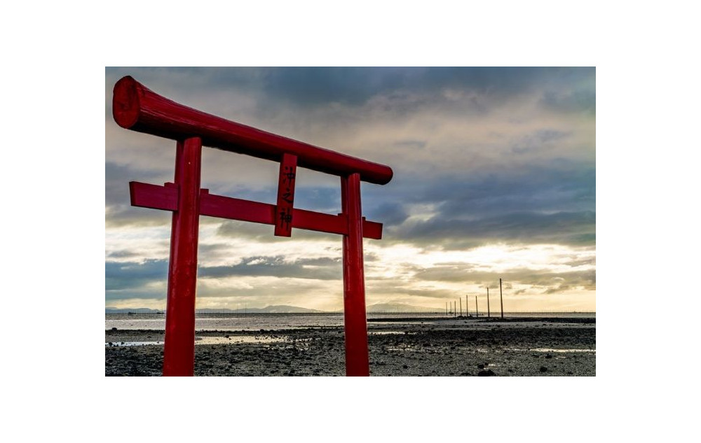 바다와 함께 서있는 붉은 기둥 해중 도리이 오우오신사 인생샷~